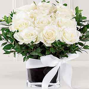 A bouquet of white roses represents innocence and purity. They are traditionally associated with brides and marriage. It is also a symbol of honor and reverence. They are often used as an expression of remembrance and sadness.