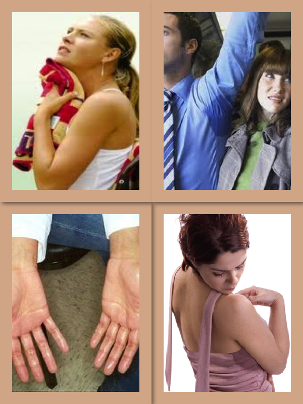 Hyperhidrosis is a common disorder which produces severe excessive sweating in certain areas of the body, like underarms, palms, soles of the feet, head, and facial sweating. It is thought that hyperhidrosis is a result of over activity of the sympathetic nervous system. Underarm problems tend to start around puberty, while palm and sole sweating may begin earlier, often during childhood or adolescence. Although neurologic,metabolic, and other systemic diseases can sometimes cause excessive sweating, most cases occur in people who are otherwise healthy. Heat and emotions may trigger hyperhidrosis in some, but many who suffer from hyperhidrosis sweat nearly all the time, regardless of their mood or the weather.